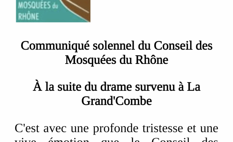 C’est avec une profonde tristesse et une vive émotion que le Conseil des Mosquées du Rhône a appris l’agression mortelle qui s’est produite ce vendredi 25 avril 2025 au sein de la mosquée de La Grand’Combe, dans le Gard. En ces heures...